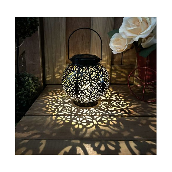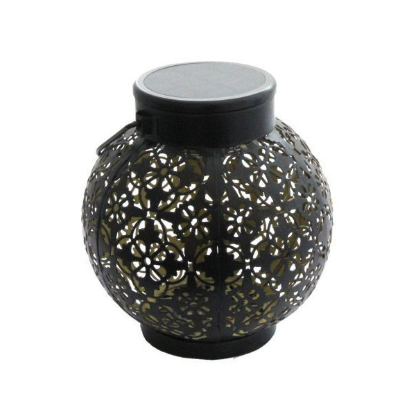 Lampe de jardin solaire décorative au design magnifique, digne des 1001 nuits, avec unité solaire Longlife. Lanterne en métal, noir à l'extérieur et revêtu de peinture or à l'intérieur pour une lueur chaleureuse.