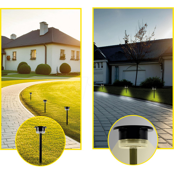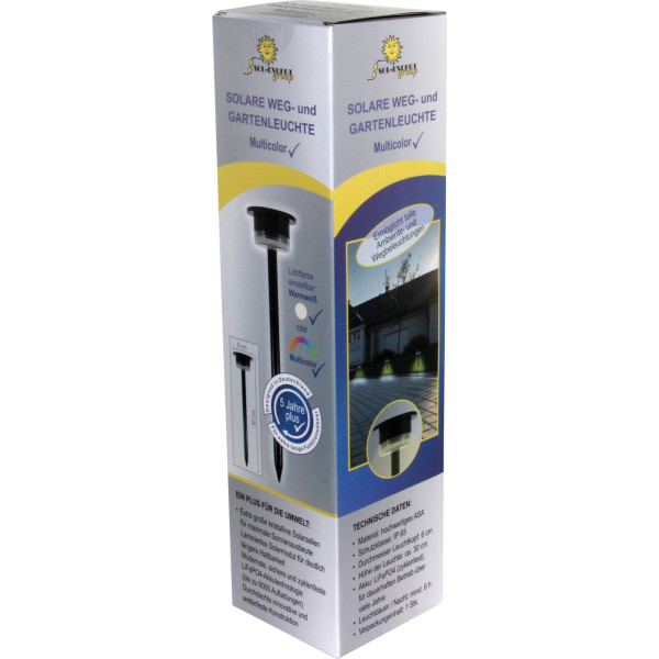 Lampe solaire de chemin et de jardin « Multicolor » de haute qualité avec piquet de terre, différentes couleurs de lumière, réglage hiver et été pour un fonctionnement toute l'année. Conçu pour fonctionner plusieurs années, il protège durablement l'environnement.